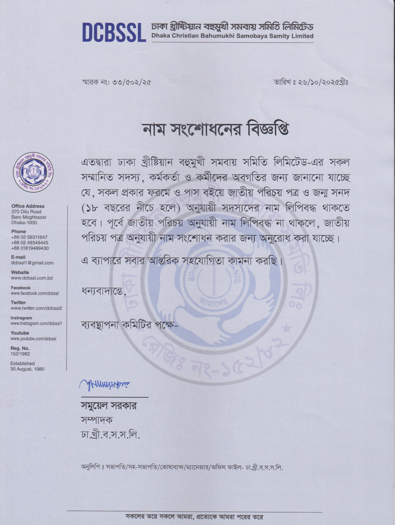 নাম সংশোধনের বিজ্ঞপ্তি