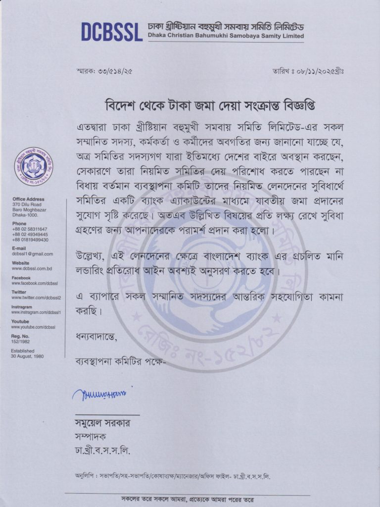 বিদেশ থেকে টাকা জমা দেওয়া সংক্রান্ত বিজ্ঞপ্তি