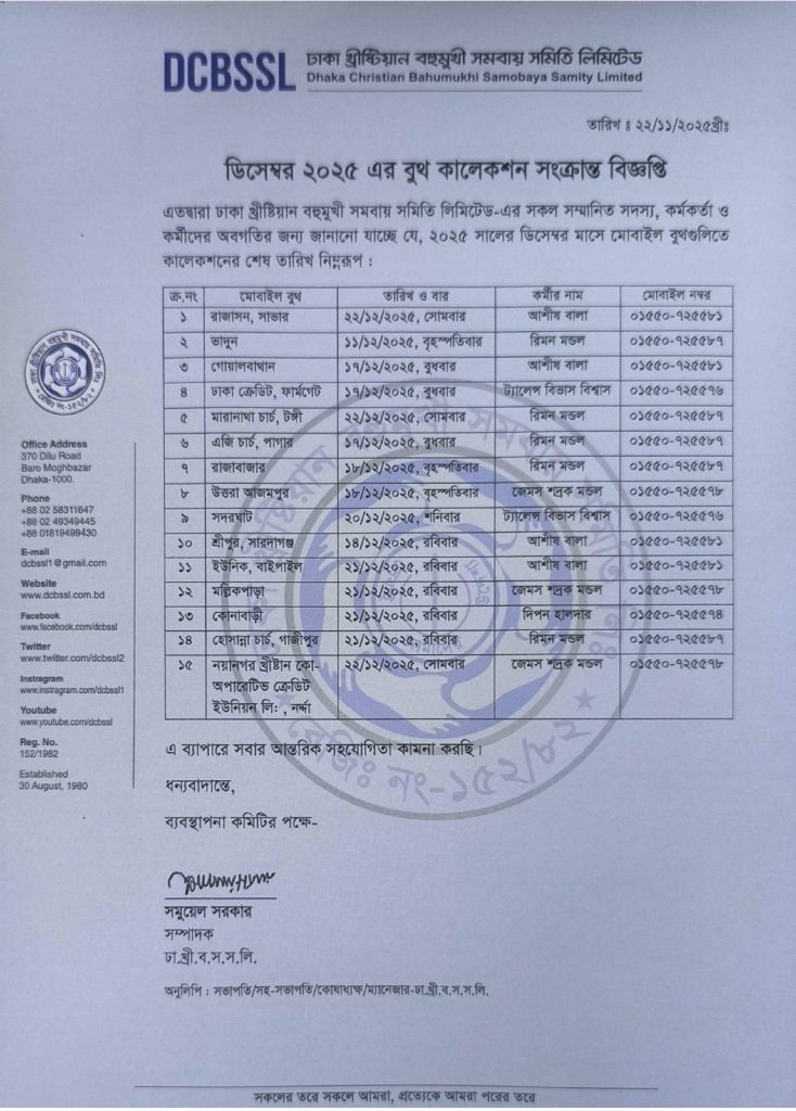 ডিসেম্বর ২০২৫ এর বুথ কালেকশন সংক্রান্ত বিজ্ঞপ্তি